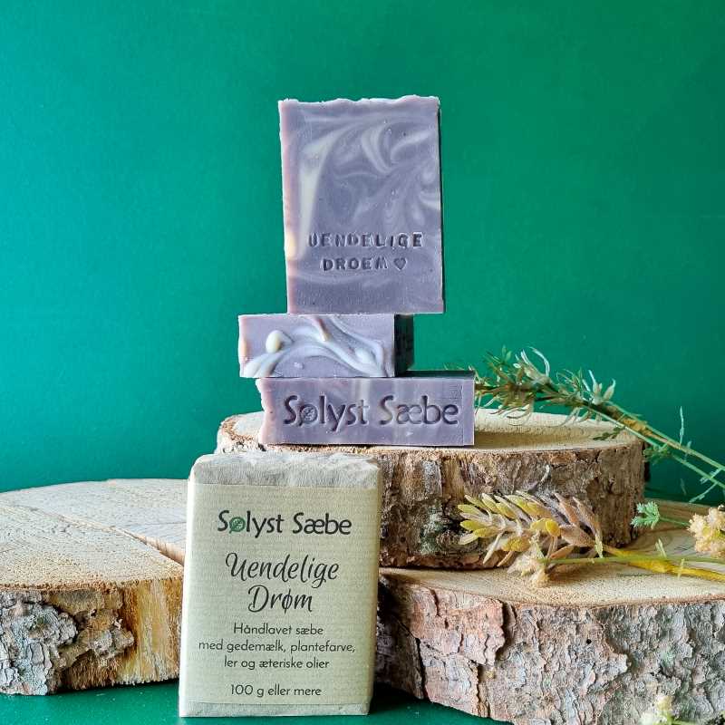 Velkommen til verdenen af “Uendelige Drøm,” hvor jeg præsenterer denne unikke gedemælkssæbe i en fortryllende lilla farve.